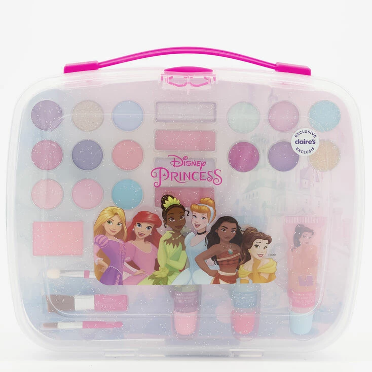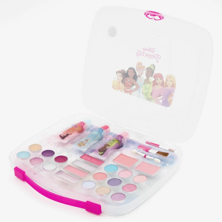 Transform into a pretty princess while wearing some of the makeup in this Disney Princess set. This set includes 7 lip glosses, 2 blushes, 15 eye shimmers, and 3 applicators.