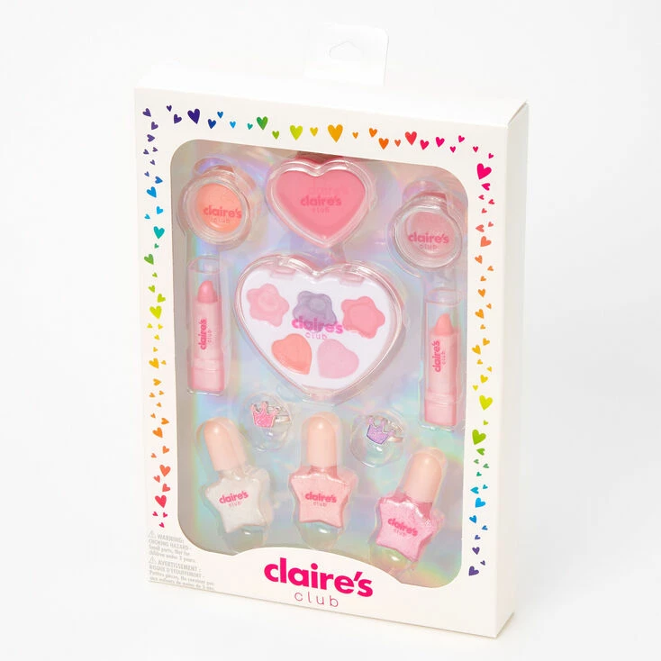 This cute set of make-up contains shimmery shades of lipsticks & glosses, plus 2 rings with glittery crowns. Perfect to doll up little faces during dress up fun.