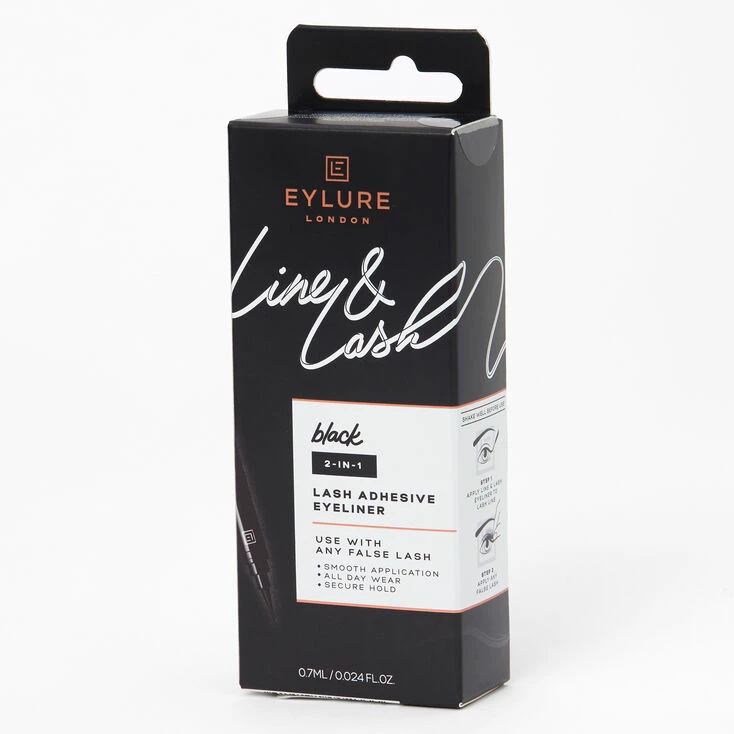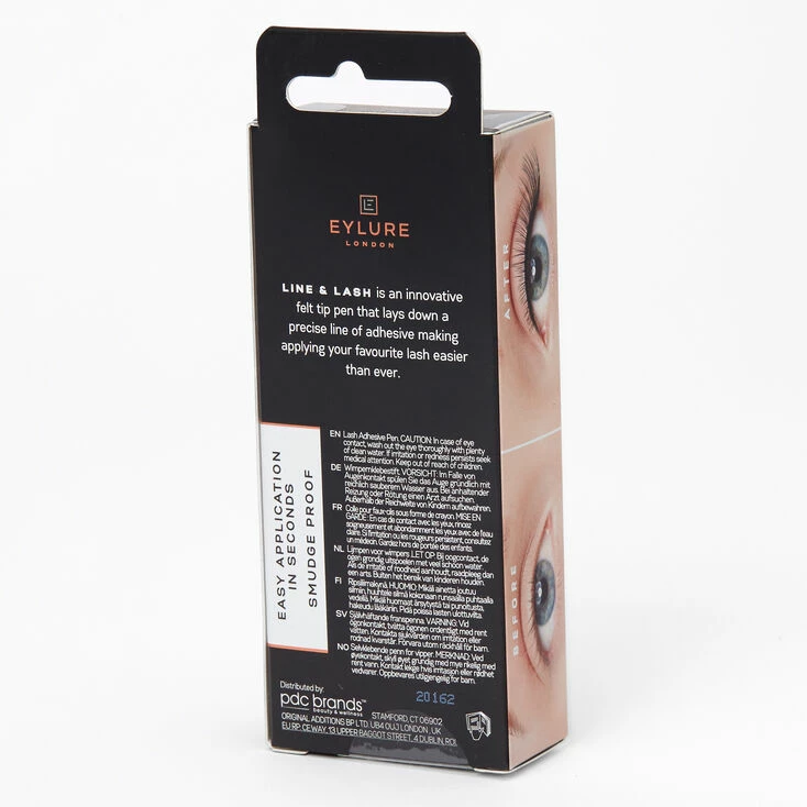 Line & Lash smudge-proof formula is a felt-tip pen that lays down a precise line of adhesive for your favorite false lashes (not included). Line & Lash offers a secure hold for all-day wear, and the black formula doubles as black eyeliner.