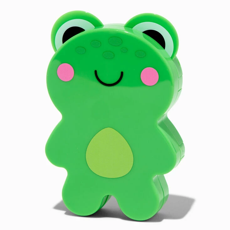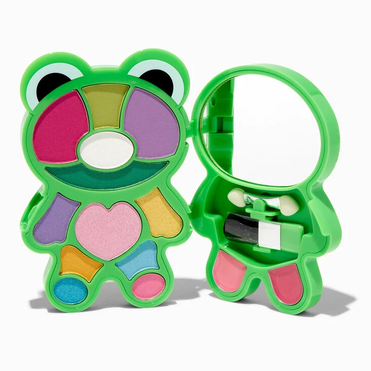 This froggy makeup set has an entire body of product! Open up the froggy, and uncover a mirror and 14 eyeshadows, 2 dual-ended applicators, and a handy mirror. Use these shades as eyeshadow, or fun blushes.