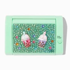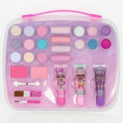 Glittery and girly,Β this makeup set has 40 bright eyeshadows and 10 shimmery lip glosses in different shades of pink. Also includes a mirror on the inside, a dual-ended sponge tip applicator and a lip brush.