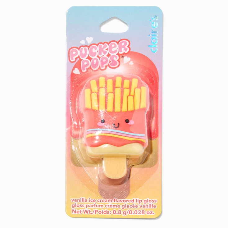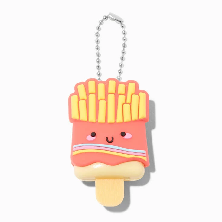 Pucker up and keep your lips soft and smooth with this vanilla ice cream-flavored gloss in an adorable chibi french fries case. Silver-tone keychain let’s you quickly attach it to your purse or backpack so you always have lip gloss when you need it.