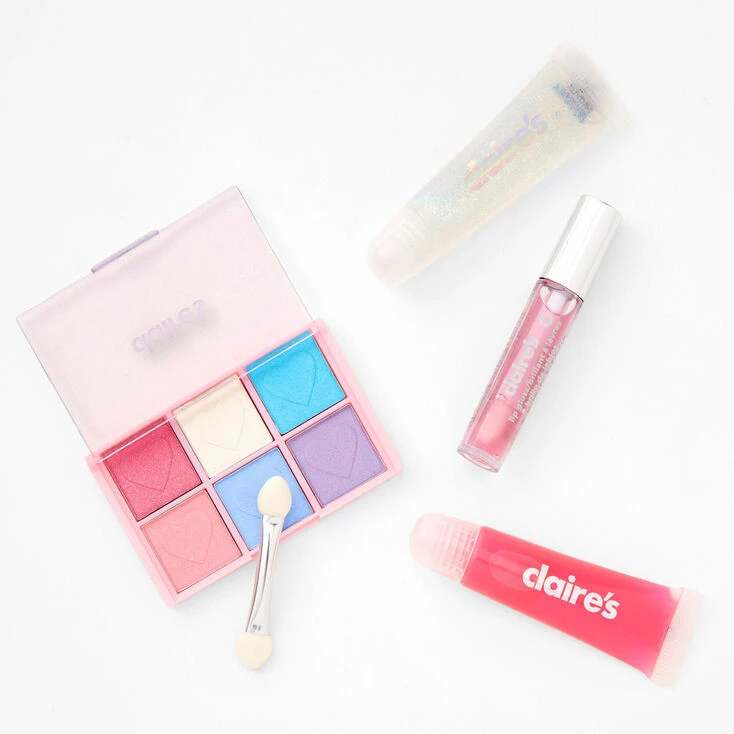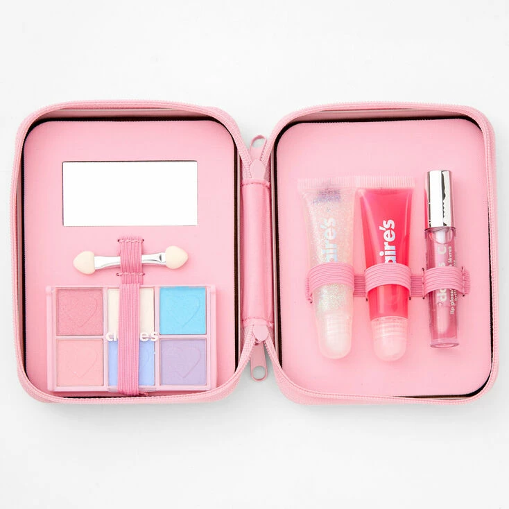 Keep all your makeup in one place with this cute set. Includes zip case tin, 6 eyeshadows, 1 mascara, 2 lip gloss, mirror, and applicator.