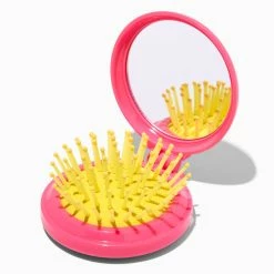 Easily comb out tangles and make your hair look smooth with the help of this unicorn bling, pop-up hair brush. Open it up to reveal a mirror on one side and the pop-up brush on the other. This is perfect for on-the-go and fits perfectly in any purse or backpack!